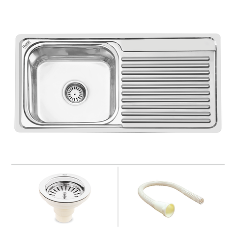 304-Grade Stainless Steel Square Single Bowl Kitchen Sink with Drainboard gives you extra space for an extraordinary culinary experience. Size- 1067 x 508 x 228mm Material & Finish |