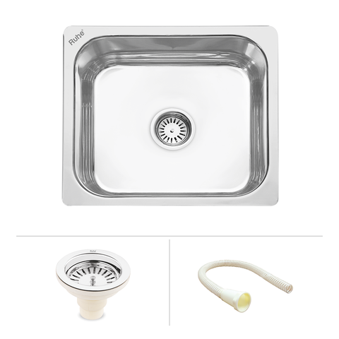 Square Single Bowl Kitchen Sinks built with 1mm thick 304-Grade Stainless Steel come with Sound-deadening Pads, Installation Accessories (Waste pipe & coupling), and 10 Years of Warranty. |