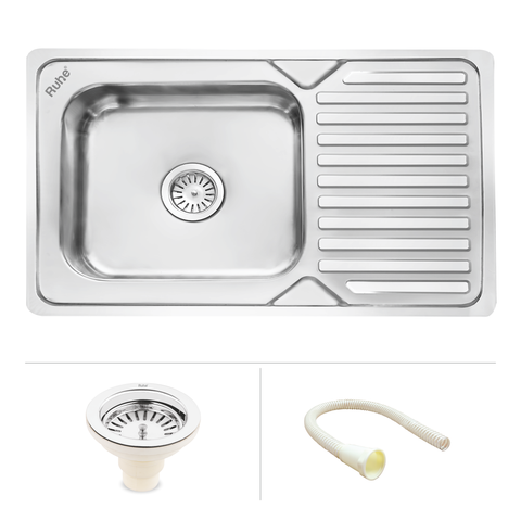 Square Single Bowl Drainboard Kitchen Sinks built with 1mm thick Premium Stainless Steel come with Sound-deadening Pads, Installation Accessories (Waste pipe & coupling), and 10 Years of |